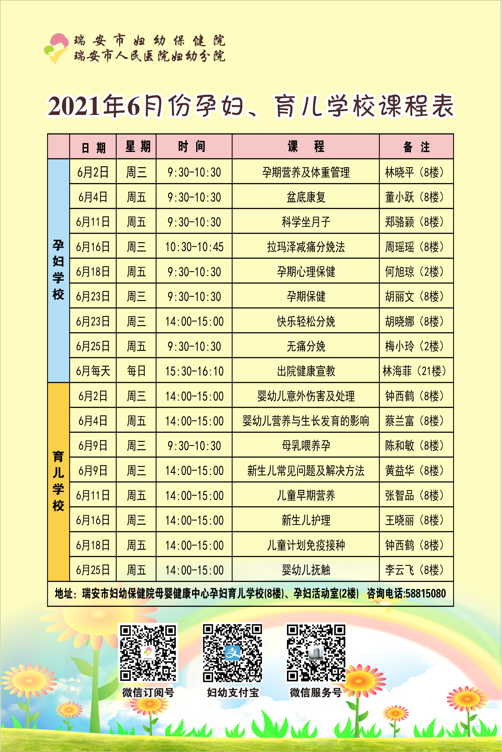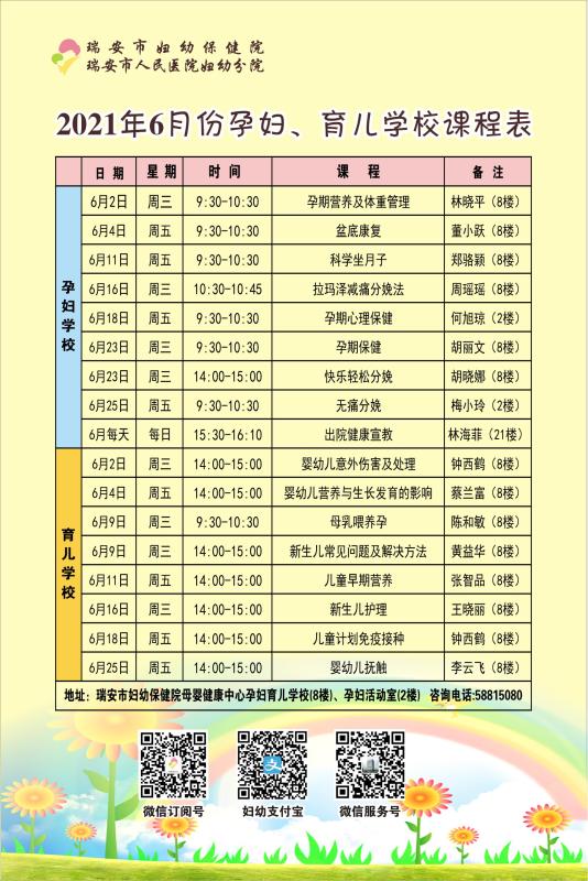 2021年6月份课程表