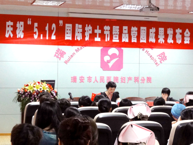 5月12日晚上6点,在母婴健康中心召开了2011年表彰大会及品管圈成果发布会,全院100余名护理人员参加。