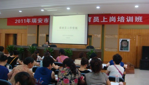 为了进一步加强我市托幼机构卫生保育工作,切实保障集体儿童的身心健康,6月20日,我院在市委党校组织了全市托幼机构保育人员上岗培训班,参加上岗培训的保育员共258人。分别邀请到温州市妇幼保健所周玉润副主任医师和朱映霞副主任医师分别对保育员工作常规和婴幼儿护理进行讲解。培训结束后进行考试,对成绩合格人员予以发放托幼机构保育员上岗证。