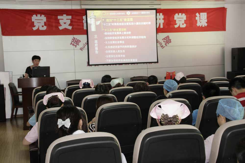我院党支部书记杜文君讲述了2011年两会概要,让在座的各位党员及中层干部共同学习了两会常识、两会概况以及两会的精神,传达了政府工作报告的重要内容,并着重讲述了“十二五规划”及2011年政府重点工作医疗卫生方面内容。同时,回顾了胡锦涛总书记的重要讲话、温家宝总理的风采及关注的社会热点,习近平同志《关键在于落实》的文章,反映了群众工作是社会管理基础性、经常性及根本性工作。