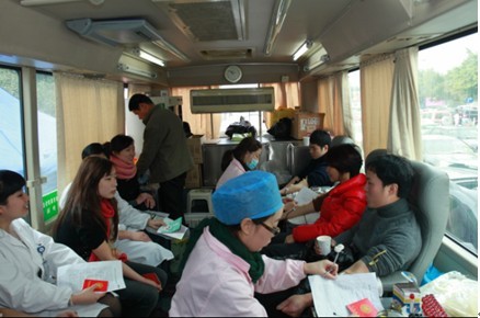 1月13日上午,玉海广场献血车前,志愿者们纷纷卷起袖子,在排队等候着验血。这是总院统一组织的无偿献血活动,我院15位志愿者也加入了此次活动的行列。