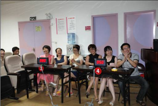 围产保健中心、保健部、儿童健康中心各派出4名选手作为代表,在随机分配的情况下分为四组。知识竞赛分为必答题、抢答题、风险题和观众题。在赛前,为了让选手们练练抢答器的手感,各组选手都聚精会神的听口号,赛前第四组选手屡屡抢到抢答权。