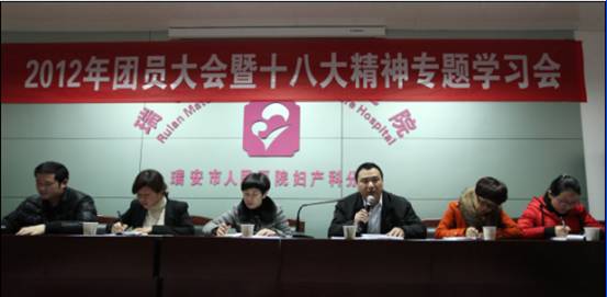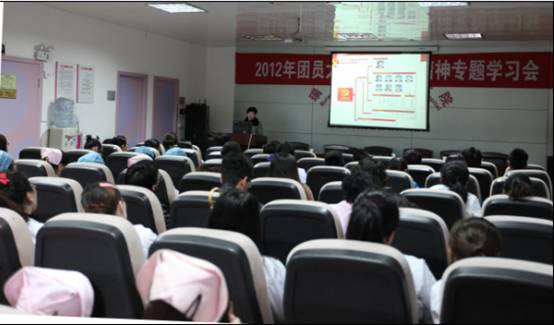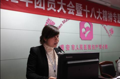 在完成庄严而神圣的奏国歌之后,首先由我院团总支书记游世梅作2012年团总支工作报告及2013年工作部署。她表示在过去的一年中,团组织加强组织建设,加强团员青年思想教育,努力打造学习型、服务型团队,注重实效,开展了丰富多彩的团员活动和文明服务,争创“青年文明号”并取得卓越社会效益。并提出今后的共青团工作中将不断加强组织和阵地建设,完善团建制度,提高共青团队伍整体实力,开展丰富多彩的团员活动,切实推动医院文化建设。