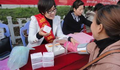 春寒料峭之际,但活动现场一片火热,咨询和义诊现场人头攒动,热闹非凡,咨询的范围涉及到妇女保健、“两癌”筛查、免费婚检、住院分娩补助及育龄妇女免费增补叶酸、预防艾滋病、梅毒、乙肝母婴传播相关知识等重大公共卫生项目问题。前来咨询的以女性居多。医生们热心的为大家量血压,耐心解答她们提出的健康咨询,并向她们发放《艾滋病、梅毒、乙肝母婴传播阻断宣传手册》、《两癌防治手册》、《育龄妇女免费增补叶酸》、《住院分娩补助》等宣传资料 500余份,其中有20多人在现场各自领取了3瓶叶酸片。