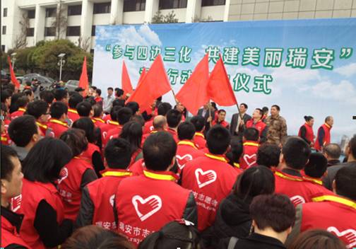 启动仪式上,市委副书记陈胜峰作重要讲话,他指出,本次活动的主题为“参与四边三化、共建美丽瑞安”,认真贯彻落实全市开展“百组千干破百难”活动,积极响应党的十八大号召,大力改善呈现环境面貌,为瑞安人民群众创建更加美好家园,积极整治重点环境,让家乡人民感受我们志愿者的热情和努力。