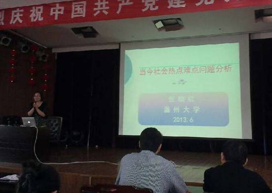 本次大会由总院卢学勉院长主持,全院各支部党员参加了此次会议。大会首先进行了预备党员入党宣誓仪式,并表彰了先进党支部及先进党员,其后对建党92年征文比赛及党的十八大党建知识竞赛结果进行颁奖。其中妇产科分院同事成绩斐然。蔡兰富、何雪威等数位同事获得院级先进党员称号。临床第二支部的章建军及临床第一支部的黄瑞芳获得征文比赛三等奖。后勤党支部获得知识竞赛的二等奖。各项颁奖结束后,温州大学的任晓红教授为党员们上了一堂题为《当今社会热点问题分析》的党课。讲课伊始,任教授用她特有的对社会问题的敏感与关注,以其看待热点问题的独特视角,用轻快的讲课方式,风趣、生动地为党员们详细解读了中国梦的内涵、解析两岸关系,探秘中美外交,认清国际形势,极大地拓宽了听众的视野,丰富了见闻。