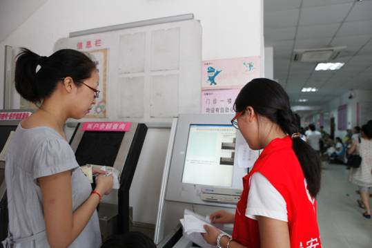今年7月份,自我院“青年志愿者社会实践服务基地”挂牌成立以来,就陆陆续续有青年志愿者来我院进行社会实践、实施志愿服务,并受到了医务人员的广泛好评。建卡室的一名医生表示:这些志愿者一来,他们的工作相对轻松了不少,志愿者把秩序维持好,他们工作起来就得心应手了。
