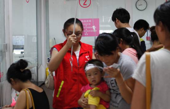 由医学院、其他高校大学生、高中生等组成的志愿者队伍在院内为患者提供门诊大厅就诊引导服务、输液室人流室陪伴服务等多项志愿服务。