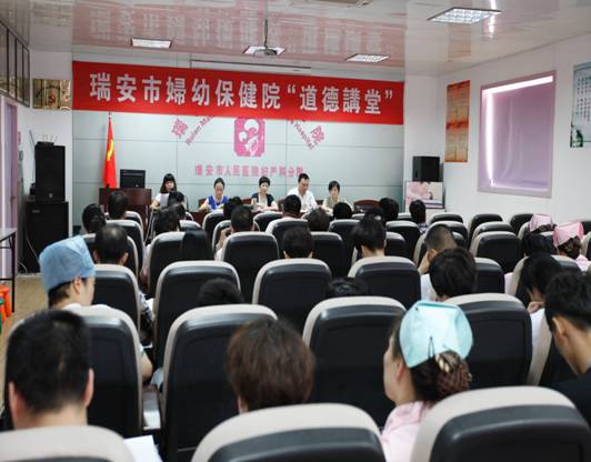 本网讯(黄瑞芳 王冰珺)走进母婴中心的大门,大家便会发现一处明显的变化。“道德讲堂”四个赫然大字冠写在了孕妇学校的门框正上面,且里面教室的墙壁上整齐粘贴了老子的格言名句,为这个课堂注入了文化和道德的蕴含。