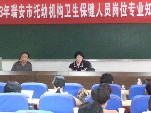 培训班上,胡永启就幼儿园的儿童意外伤害事故的预防、急救处理进行专题讲解,周玉润对《浙江省托幼机构卫生保健管理办法实施细则》进行的详细的解读和相关内容说明。这次培训内容丰富,知识全面,很切合大家的工作实际,有利于提高托幼机构卫生保健人员保健知识水平,受到大家的一致好评。培训结束后分别进行考试,考试成绩合格者,分别给予验证。