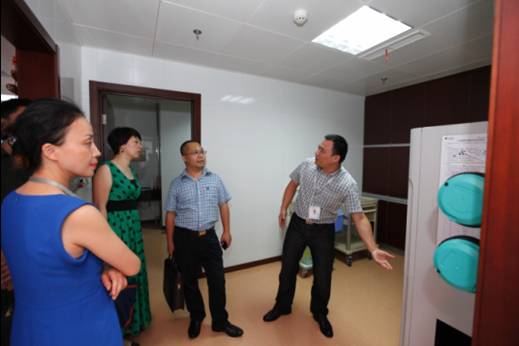 (李道德副院长介绍我院特需产科二区的医疗设备)