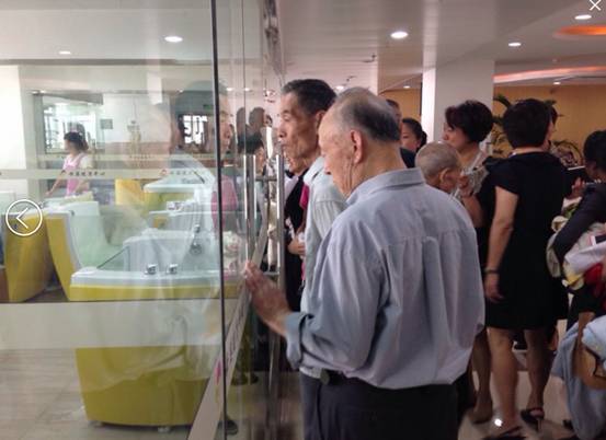 老干部们踏进了妇幼保健综合大楼的大门,置身于崭新、宽敞、明亮的环境中,令他们回想起当年自己所处的简陋医疗环境,不禁感叹今非昔比,现在有种“刘佬佬逛大观园”的新鲜感觉。电梯直上22楼特需产科二区,参观了LDR家庭式产房。先进齐全的设备、家居式套房、人性化的服务,令老干部们大开眼界。“现在的条件可真是好啊,子孙们还是来妇幼生孩子的好。”随后来到了13楼新生儿病区,进入特色的家属探视通道。在这,可以直观地看到宝贝们住在保暖箱内,也可以亲眼目睹医护人员的悉心照料。这是空间上的零距离,更是心灵上的零距离。最后,来到了8楼母婴健康中心,优雅的环境,轻柔的音乐,热情的服务,让人备感舒畅。老干部们饶有兴趣地观看起了小宝贝们的游泳和抚触。“这些宝贝生下来就会游泳啦,躺着抚触真是一种享受啊!”