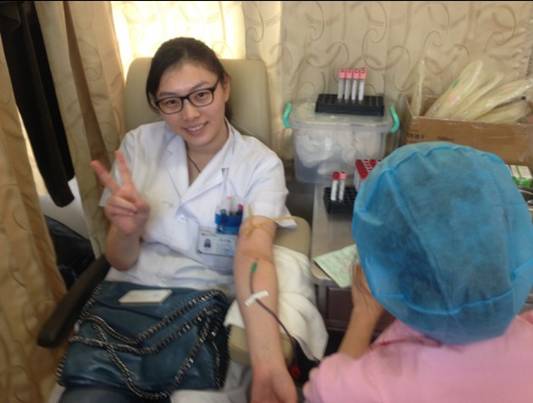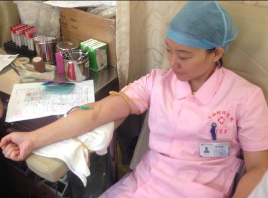 刚下车,我们就被无偿献血车前排队登记的队伍吓住了,只见前面已经排起了长长的队伍,我们也赶紧加入其中。在登记排队的时候,我发现在我前面排队的一名护士长竟是一名英雄,曾站在03年的抗击非典的第一线。在详细了解的哪些情况可以献血,并经过简单的身体检查后,我们一行人都通过了献血前的第一关。进入献血前的第二关,血型检测、肝酶及贫血的检查。在检查时,我们发现来献血的人越来越多,队伍比之前跟长了,不由庆幸自己来的还算早。在检查期间,工作人员告诉我一早到现在已经有80多人来献血了,其中还发现2个人是少见的熊猫血。经过一段时间的等待,我们全都通过的检查,顺利的来到的献血车上。看到前面正在献血的人,一位首次献血的同事紧张不已,但最后还是勇敢的献出了自己的血液。