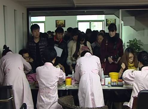 为缓解情人节新人扎堆登记、婚前检查繁忙的状况,我院作为瑞安市唯一一家婚前医学检查中心,积极应对,提早做好各项准备工作。首先,在婚检中心隔壁另租一100多平米的场地;其次,增加人员配备;当天有29名工作人员在婚检现场,包括在登记处、体检、抽血等岗位加派工作人员,并派人员做好宣传、导引及维持次序,满足广大新人参加婚检的需求,并有效缩短新人们的等候和检查时间;第三,延长服务时间;婚检处所有工作人员上班时间提早1小时,中午不休息,下班时间延迟,直至所有对象检查完成,并准备好相关资料,确保每个服务对象都能得到满意的服务;再次,营造宣传氛围,使每一对新人都能享受到政府民生工程的关怀。针对婚检中发现的问题,婚检中心医生均为其进行了解释,并耐心、细致地给予了专业指导。当天共有241对新人参加了免费婚前检查。