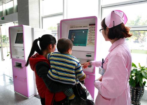 从办理就诊卡、现场挂号、预约挂号到缴费取药、打印检验报告单等等,均可在自助服务机上自如操作,机器上也可以直接进行银行转账服务(除信用卡以外的所有银联卡),缴费时再也不用揣着一叠钱在窗口苦苦排队了,而且每个操作环节均只需花几十秒,大大缩短了排队时间。自助机的启用,不仅提高了就诊效率,解决了排队难挂号难的问题,而且大大方便了患者,也减轻了医院的负担。