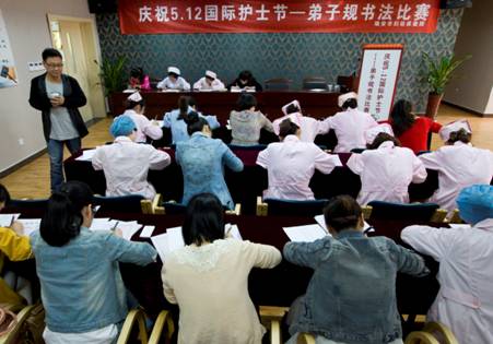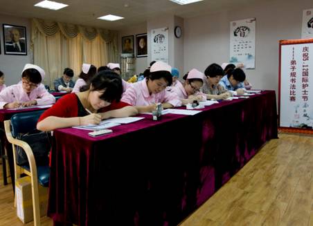 5.12护士节系列活动之——硬笔书法比赛,在审美和鉴赏中缓缓落下序幕,大家在文字的厚薄、轻重、急缓、锋钝之间,欢度了属于自己的节日,同时也印刻下了2014年护士节美好的画面.