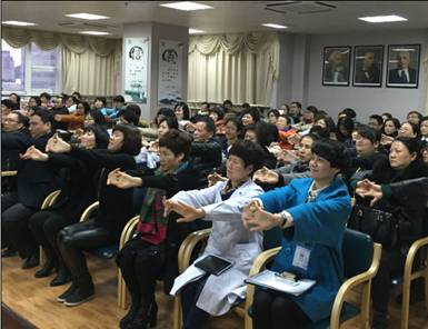 这次会议距上次窗口优质化服务及现场5s建设培训已有三个多月,我们科室在这三个多月里也逐渐对科室里出现的新、旧问题进行整改,取得了一定的进步。会议由我科陈丰利医生主持,陈丰利平时讲话就风趣幽默,会议开始就带大家作起了健康操,现场乐成一片,气氛热烈。接着由我科王淑珍护士介绍了我科这三个月来的一些整改和整改后效果,包括面带微笑、双手递物、态度和蔼、物件摆放等等,有很大改观。