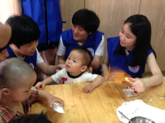 在南院长的指引下,我们把提前准备好的捐赠书本、玩具送进了他们的办公室。我们一放下物资,就迫不及待地提着买的小零食走进了儿童生活区。在那里我第一次看到了福利院的孩子,发现他们的眼神中充满了期待和兴奋。可能是刚开始接触的时候还有一点陌生,有些孩子不敢拿我们送的食品。随着沟通的深入,可爱的孩子们会伸出双手要我们拥抱。大家来到孩子们身边,和他们一起聊天、做游戏,并把自己精心准备的小礼品送给他们,活动区里热热闹闹,到处都充满着爱的气息。面对几个生理有障碍的孩子,我们的女同事不禁热泪盈眶。