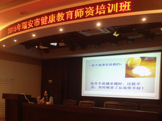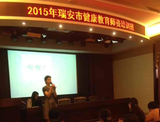 本网讯(保健部) 9月22日下午,2015年瑞安市健康教育师资培训班在我院九楼多功能厅举办。来自市级医疗机构孕妇学校负责人、各镇街卫生院公共卫生科科长、妇保、儿保人员等79人参加。