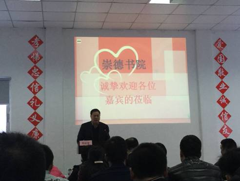 讲座内容丰富,其中吕明晰老师为我们讲授了《孝道与幸福》,吕老师举了很多案例进行解说,阐明了弘扬优秀的中华传统文化是党的十八大提出的工作要求,同时也是现实社会的道德需求。书院院长白皎皎提出:“近年来,社会上出现了许多不和谐,如家庭不和谐、身心不和谐等,想要真正解决问题,只有从道德入手,通过传统文化的学习,吸取传统文化的精华,从根本上改变这一现状”。确实如此,在坐的学员都深有感触。不仅如此,崇德书院致力于传播中华优秀传统文化,弘扬伦理道德,书院邀请传统文化传播领域专家,主要开展“四德”(即社会公德、职业道德、家庭美德、个人品德)教育。
