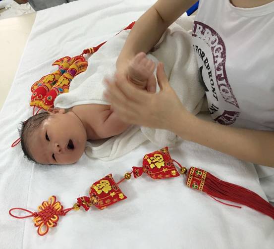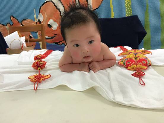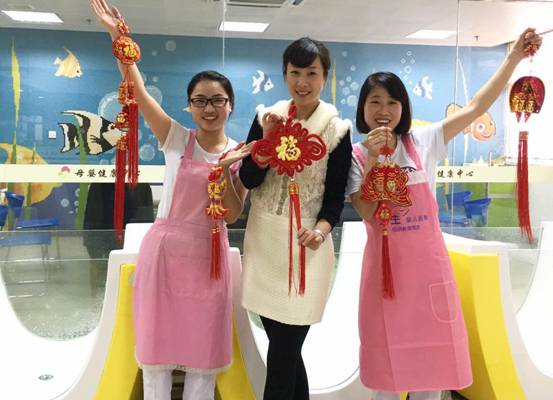 瞧,红红火火的喜庆年货都齐齐派上用场了。有对联、福到、钱袋、金畚斗、年年有鱼……母婴中心成员们拿着这些道具,摆上不同的pose,在照相机面前开心地笑着,留下了节日喜庆的瞬间。还有一些前来游泳、抚触的婴幼儿们,也要凑上热闹。它们粉扑扑的脸蛋,在喜庆氛围的衬托下,更有一种“萌萌”的感觉。随着一张张照片的拍摄,仿佛一番番欢乐的感觉扑面而来,感受着喜庆的气息,留下了过年的味道。