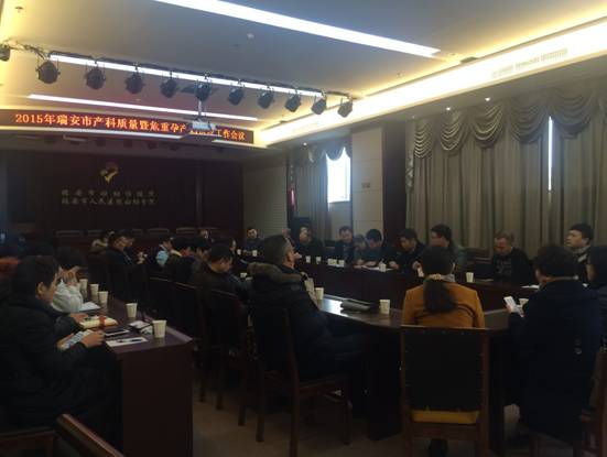 会上,我院院长杜文君解读我市高危孕产妇面临的形式。2015年8月温州市分级管理开始实施,10月全面放开二胎政策正式落地,随着这两项政策的实施,全市的产妇数量将在2016年达到1个新的高度。瑞安全市育龄妇女24.3万,其中13.1万是潜在备孕妇女,年龄大于35岁的占56.3%,很多70后、80后妇女跃跃欲试,好赶上二胎政策的末班车,这些人群是高危孕产妇的基础人群,极易并发高危妊娠合并症。同时我市的分娩量预计将达到3.6万人次,这些鲜活的数字督促着与会的专家们群策群力,大家结合产科质量、保健、相关医疗科室三个方面,结合自身临床专业的特点,为提高危重孕产妇抢救能力,降低孕产妇、围产儿死亡率出谋划策。1、为更好的实施分级诊疗制度,基层卫生院的专业培训要深入。卫生院掌握辖区人口的健康档案,对于合并急慢性疾病、不宜妊娠疾病的育龄妇女争取在孕前做好宣教、规劝,事半功倍。卫生院的妇幼人员做好辖区怀孕妇女的摸底工作,动员孕产妇及早、就近前往户籍地或居住地建卡,进行系统管理。产前门诊医生加强孕产妇的高危筛选与识别,如妊娠合并内外科疾病,及时录入温州市区域信息网络,加强对孕产妇特别是流动孕产妇的健康宣教,提高她们的保健意识。2、本着对生命负责的态度,转诊危重孕产妇时医务人员不隐瞒病情,敢于担当,实事求是,积极沟通。3、分娩量多的产科单位应该常规备血,对于紧急抢救的案例,简化取血的流程,确保血制品及时、足量到位,抓住抢救的黄金时间,提高抢救成功率。4、典型的抢救成功案例不藏私、多分享,提高我市医务人员的整体应对、抢救水平。5、危重孕产妇抢救的救助资金应及时落实,不让医生劳心有劳力。6稳定基层妇幼人员队伍,避免人才流失。