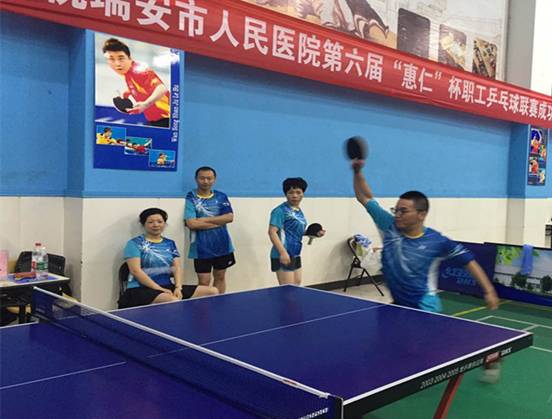 本网讯(通讯员 陈冬云)6月26日,清晨的大雨没有浇灭选手们的热情,瑞安体育馆乒乓球场内一片火热景象,瑞医第六届“惠仁”杯职工乒乓球比赛开幕了!
