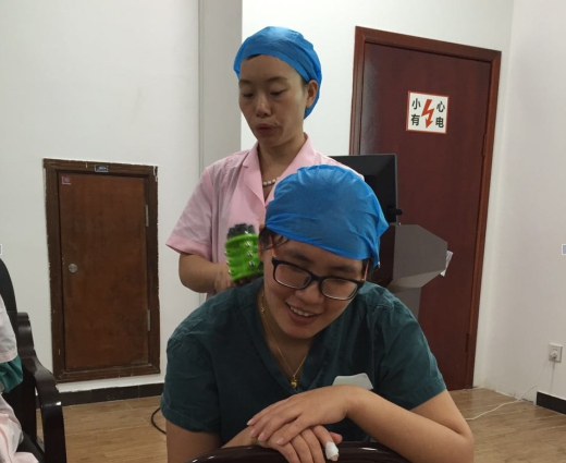 目前,我院自由体位跟分娩球的运用比较广泛,而胡晓娜着重介绍了触摸与按摩,并现场作了示范。在分娩过程中,腰痛是孕产妇最难忍受的过程,所以各种按摩的器械跟手法显得十分受用。相信这些手法能够在产妇最为煎熬的时候,减轻一些痛苦。