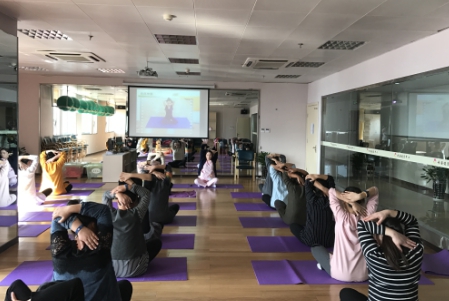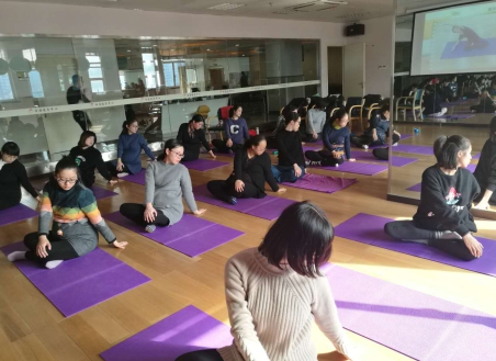 本网讯(通讯员 黄瑞芳)1月5日,15位孕妈妈在瑜珈教练的带领下,聆听着轻柔的音乐,舞动着“孕期”的身姿,快乐地“孕”动着。这就是2017年新春伊始有氧瑜珈(单人操)的练习场景,也给这个新年开了一个好头。