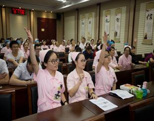 其中,有6个代表科室参与手卫生PDCA评比,大家就各自科室在手卫生质控现状、对策、成效等方面情况进行了汇报,评委采取现场打分的方式评比;而手卫生舞蹈、诗歌朗诵等活动,采用评委现场投票的方式,分别评选出一、二、三等奖,并予以奖励;在院感知识有奖竞答环节,台下观众你来我往,积极抢答,拼的是速度与才智!场上场下的和谐互动,让比赛气氛更活跃更激烈更具趣味性。