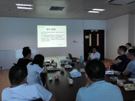 因董主任工作行程非常繁忙,门诊指导工作结束后,董主任和我院儿科、儿保20多位医师就在19楼普儿病区示教室一起吃了盒饭,就开始给我院医师讲授《儿童甲状腺疾病》。儿童甲状腺功能异常在基层碰到较多,通过此次讲座,我院可以统一诊治方案,规范诊疗,造福百姓。