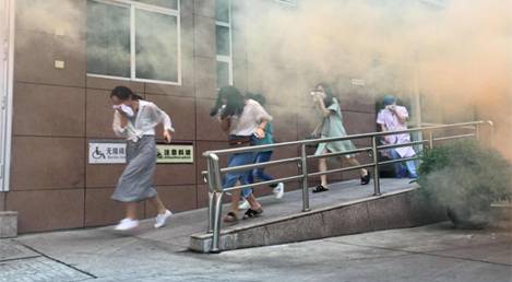 在知识讲座后,还组织了应急逃生演练。演练假设:医院内部发生火灾,火势迅速向四周蔓延,并产生大量浓烟,消控中心发现火灾后,立即启动灭火救援应急预案,同时组织疏散人员和拨打119火警电话。整个演练不到五分钟全体人员都疏散到安全地带。此外,在我院一号楼前空地进行了现场灭火器操作演练。在实操前,陈海慧对灭火器使用的操作步骤和注意事项进行了一一描述,紧接着全体员工依次陆续进行灭火器实操体验。