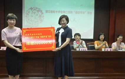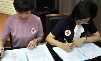 仪式上,瑞安市红十字会与我院签署了合作协议,并予授牌,根据协议要求,由林丽院长向“母婴平安”项目捐赠配套资金20万元。