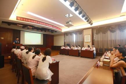 本网讯(通讯员夏慧南)8月8日下午,在我院医教科的组织带领下,于九楼多功能会议室进行了核心制度知识抢答竞赛。本次比赛,由我院院长林丽,党总支书记李道德,党总支副书记余筱玲,副院长陈秀清、余雪梅共同担任评委,投诉科科长陈孝祥担任主持人。