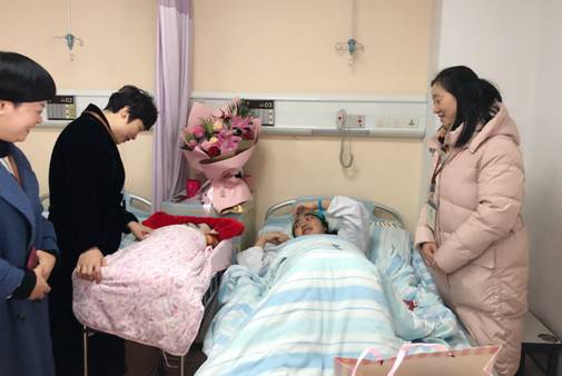 本网讯(通讯员 戴秀蓉)2019年元旦之际,我院党总支书记林丽,副院长陈秀清、柯汝淑,护理部副主任郑骆颖来到产科病房,看望于1月1日凌晨诞生的五位元旦宝宝,亲切地称之为“五福娃”, 为每位产妇送上鲜花和礼品,并热情地与产妇及家属进行了交谈,祝她们元旦快乐,家庭幸福美满,宝宝健康成长!五位产妇及家属对院领导的看望表示衷心的感谢,她们说在妇幼分娩给人非常舒适、舒心、安心、安全的体验!