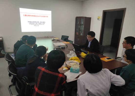本网讯(通讯员 邵伟强)12月19日晚,我院儿科邀请温州医科大学附属育英儿童医院张维溪主任医师来院讲课,讲课主题为《儿童过敏性疾病综合治疗和早期干预》,培训在13楼新生儿科示教室举行,由儿科主任郑俊虎主持,共20位医师参加了学习。