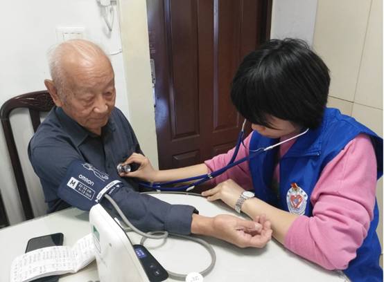 在老党员家中,我院临二支部书记叶剑认真询问他们的身体状况和家庭状况,同时将慰问品送到他们手中。我院志愿者们为老党员同志及其家人进行测量血压血糖及内科检查,并由我院内科钱若楠医师对患有高血压和高血糖的老同志们给出诊疗建议,并跟老党员们交流了如何养成良好健康饮食和生活习惯。