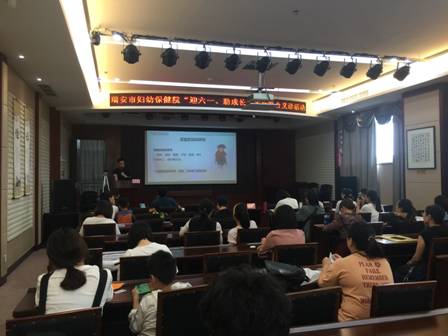 5月26日上午,医院综合大楼9楼经医务人员精心装扮后充满童趣,现场弥漫着“六一儿童节”的气氛。40多名已在网络平台预约的家长带着宝宝如约而至。活动现场,工作人员分工细致,井然有序。宝宝由负责游戏组人员带到儿童游戏场所进行折纸绘画比赛,让会场上的家长专注听课,无后顾之忧。