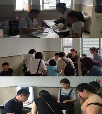 义诊现场,医生详细询问孩子们的身体状况,为孩子们进行必要的身体检查,为家长介绍儿童生长发育和卫生保健常识,有针对性地进行指导,使家长对孩子的身体健康状况有了进一步了解。