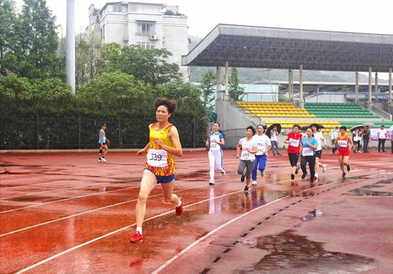 比赛正式开始了,首先同时进行的两个项目是慢骑和穿衣接力。运动员们一个个摩拳擦掌,拼尽全力,雨水仿佛受到热烈气氛的鼓舞,愈发的下得欢快。不急,握住方向盘,稳稳慢骑……快速穿衣、打结、竞跑、接力……落后了尽力赶,摔倒了爬起来……终于,在一片的欢呼声中,穿衣接力2队胜利获得妇幼代表队第一枚奖牌。接下来的比赛更是捷报频传:潘婷婷获女子青年组女子400米第三名,陈雪梅获中年组女子400米第一名,陈凯博获青年男子跳高第四名,南燕获青年女子跳高第四名……一天半的比赛中,妇幼代表队硕果累累,共获得运动奖项21项,分别为:女子400米、800米、跳绳,男子实心球个人第一名共4个;中年女子立定跳远第二名1个;女子400米、800米、跳远、实心球,中年男子跳绳,个人第三名共5个;青年男子、女子跳高个人第四名共2个;女子800米、男子3000米个人第六名共2个。飞镖团体第二名1个;穿衣接力团体第三名1个;袋鼠跳、企鹅漫步、集体跳长绳团体第四共3名个;飞镖、袋鼠跳团体第六名共2个。