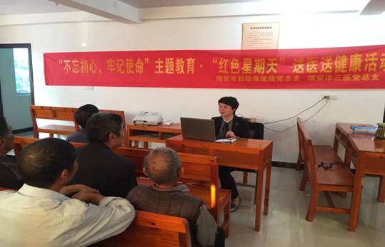 本网讯 (通讯员 陈圆圆 李铭铭)为提倡全民健康,贯彻落实“不忘初心、牢记使命”的主题教育精神,11月17日我院党总支携瑞安市三医党总支,前往马屿镇冯渡村开展“红色星期天”送医送健康活动。