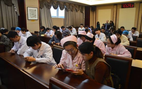 本网讯(文/谢丽艳 图/周寿铸)11月26日下午,由我院党总支和工会联合举办的“不忘初心,牢记使命”暨 “学习强国 文化强院”主题知识竞赛在九楼多功能厅举行。本次活动由团总支副书记金环环主持,参加对象为全院党员、入党积极分子、发展对象等组成,临床第一支部、临床第二支部及行政后勤分别选派4支队伍共36人参加比赛。