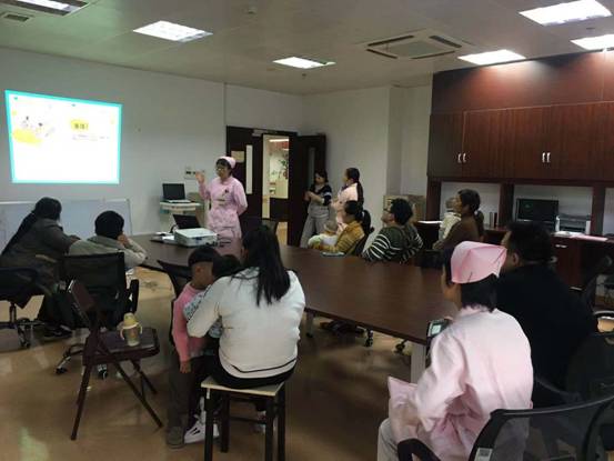 讲座过程中,护师周丹详细的讲解了高热惊厥的发病原因、症状表现,阐述了高热惊厥的治疗原则和预防措施,教导家属们一些简单易学、科学有效的防治方法,使高热惊厥知识更加广泛的被家属们理解。随后,谢江强主任更生动有趣的告知家属针对现季节转换需要了解的注意事项,极其耐心的为家属进行解答并做相关总结,得到了患儿家属的一致称赞。