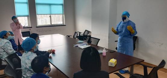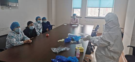 3. 防护用品穿脱操作现场培训考核:对手术室、分娩室、发热门诊等重点科室护工进行穿脱防护用品操作培训及考核。
