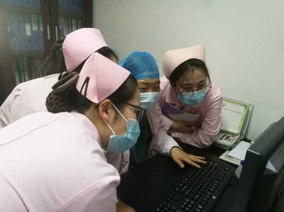 这边,护士姐妹们针对自己在读书报告、疾病查房、个案书写等方面存在的问题,虚心请教胡晓娜老师,一个个聚精会神,认真学习的样子真美!