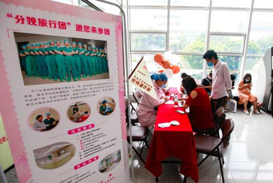 下午14时30分,准爸妈们早早地就来到我院一楼大厅集合签到,他们表示对接下来的分娩之旅充满期待。