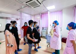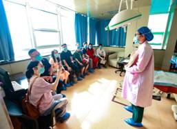 “分娩之旅”的第二站---分娩室,在不影响产房正常工作的情况下,我们的团长带领准爸妈们有序的进入到待产室、独立套间进行实地参观考察,一起去揭开生命诞生地的“神秘面纱”。让大家提前感受生产时的环境、房间布局、设备仪器,和我们的助产士一对一的近距离沟通交流,答疑解惑,以减轻生产前的压力和焦虑。