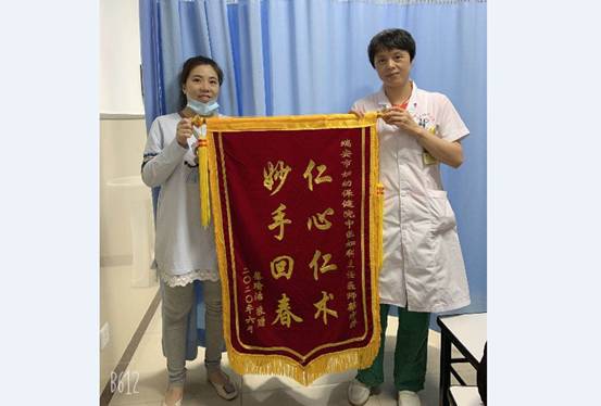 原来,一大早来了一位蔡女士,她满怀感激地给中医妇科蔡宇萍主任医师送来一面锦旗。