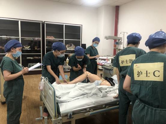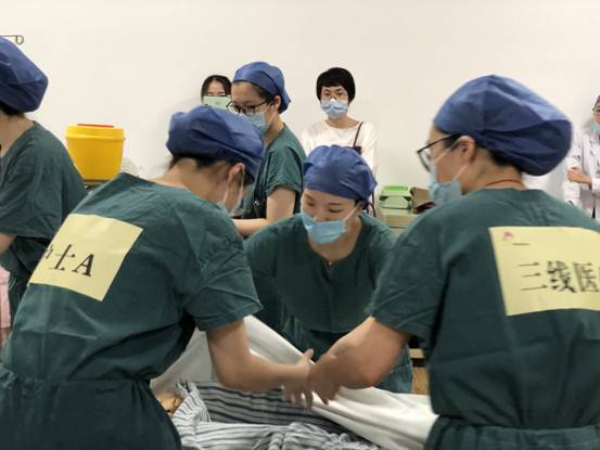 在模拟子痫演练过程中,演练人员按个体化配置,分别由三名医生(一线,二线,三线)和三名医护室(护士A、B、C)组成抢救小组,模拟子痫发生现场,立即启动科室子痫急救应急预案,针对子痫发生处理原则、抢救流程、急救药物使用进行演练。各小组成员迅速各司其职、有条不紊地配合抢救工作,医护人员配合默契、处理妥当,充分展现了我院产科医护人员急救应急处理能力及扎实的专业知识。