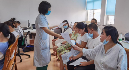 首先,于慧副主任医师简单介绍了妊娠期糖尿病相关知识,尤其妊娠期糖尿病对母儿的危害,引起糖妈妈们和家属足够的重视,谢芳副主任医师根据产妇的身高体重计算出体重指数及每日所需能量,换算成食物交换份,然后介绍应该吃什么?吃多少?怎么吃?将每日所需交换份合理分配到三正餐及三加餐中。